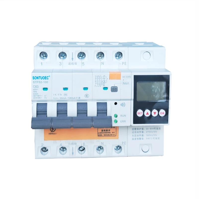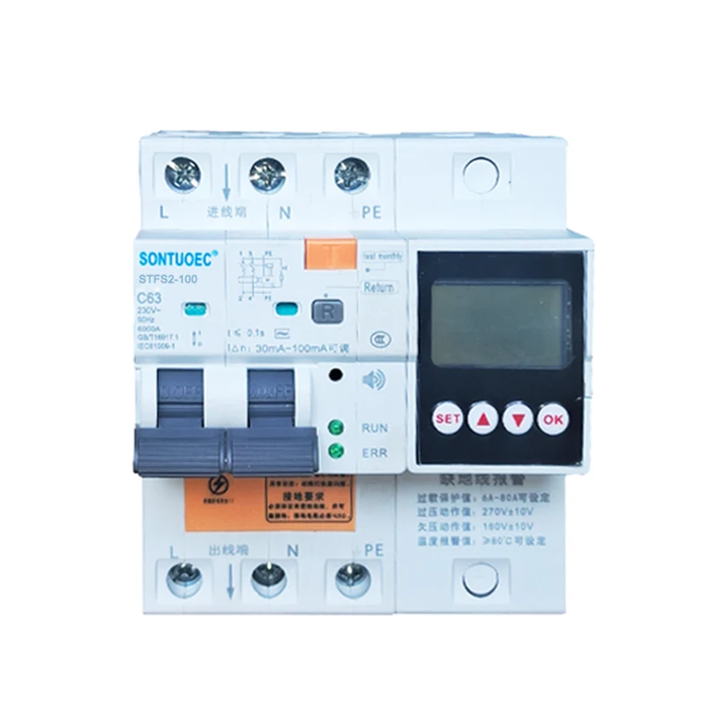STSF2-100 100A 2p 4p Multifunctional RCBO inafaa kwa AC 50/60Hz, iliyokadiriwa katika mzunguko na voltage ya 230V-400V na kiwango cha sasa cha 100A, wakati Aperson amepigwa umeme au gridi ya umeme inavuja. Wakati uvujaji, overvoltage, na undervoltage kufikia maadili yaliyowekwa, mabaki ya mzunguko wa sasa wa mzunguko yanaweza kufanya kazi haraka katika kipindi kifupi sana cha muda kukata usambazaji wa umeme. Wakati joto la ufuatiliaji wa mabaki ya mzunguko wa sasa wa mzunguko hufikia thamani iliyowekwa, waya wa ardhi wa ufuatiliaji haujaunganishwa. Inapounganishwa, bidhaa hutoa sauti ya kengele kulinda usalama wa wafanyikazi na vifaa vya umeme, na inaweza kuzuia Kuzuia uharibifu wa vifaa vinavyosababishwa na overvoltage kwenye gridi ya nguvu. Ina upakiaji mwingi, mzunguko mfupi, uvujaji, undervoltage undervoltage na kazi za kinga za kupindukia pia zinaweza kutumiwa kuwasha na kuzima vifaa vya umeme chini ya hali ya kawaida Mizunguko ya taa, haswa inafaa kwa mifumo ya usambazaji wa taa za viwandani na biashara. Bidhaa hiyo ina kiasi kidogo, muundo wa kompakt, na ufanisi bora kuliko bidhaa zingine zinazofanana. Ina muonekano mzuri, Uwezo mkubwa wa kuvunja hufanya iwe chaguo nzuri kwa usambazaji wa nguvu za kaya. Bidhaa hii inaambatana na viwango vya GB/T 16917.1 na IEC 61009-1 na imepata udhibitisho wa CE.