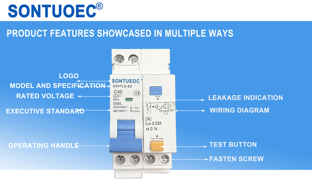 SONTUOEC ni mmoja wa wasambazaji/watengenezaji wa China wanaobobea katika utengenezaji wa vifaa mbalimbali vidogo vya umeme. DZ47LE inatumika kwenye laini ya AC 50/60Hz iliyokadiriwa voltage 230V kwa waya moja nji mbili , pole 2 au pole 400 V Ncha 4 na iliyokadiriwa sasa hadi 63A. Inaweza kulinda laini na mota kutoka ziada na mzunguko mfupi Pia inaweza kutumika kuzipie+ chikie+